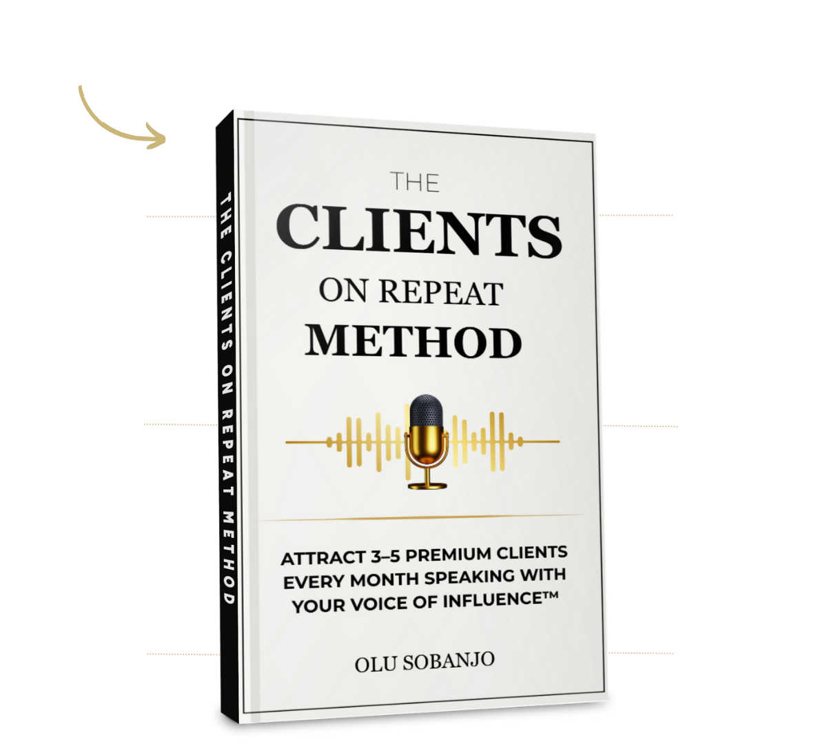THE CLIENTS ON REPEAT METHOD is a new and counterintuitive way of attracting 3-5 premium clients on repeat by getting clear on your unique Voice of Influence™ and turning it into a clear magnetic message, hosting strategic events and enrolling 3-5 premium clients from month to month.