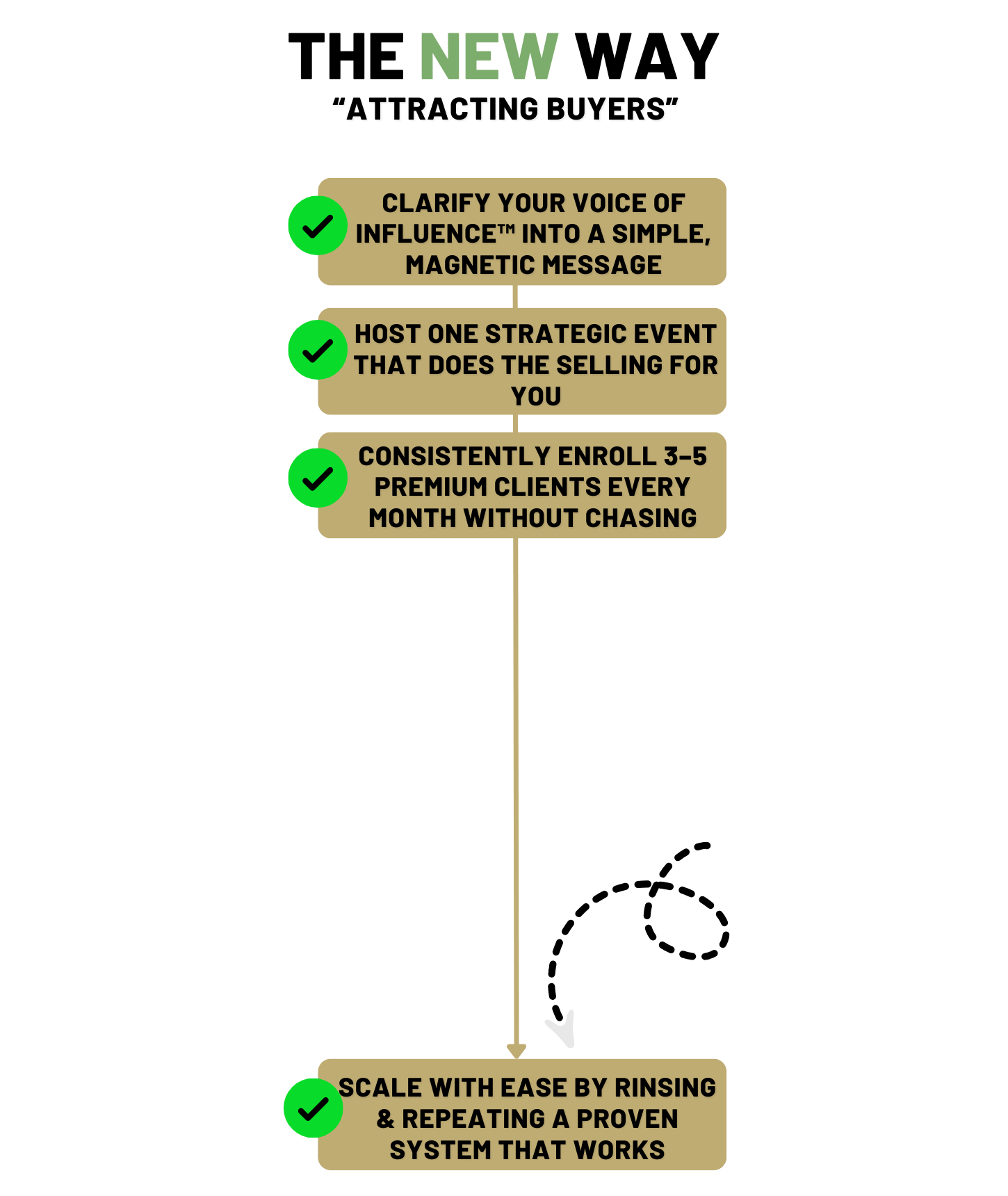 I learned how to confidently enroll 3–5 premium clients every single month—without posting daily, risking thousands on ads, or chasing prospects around like a desperate salesperson.